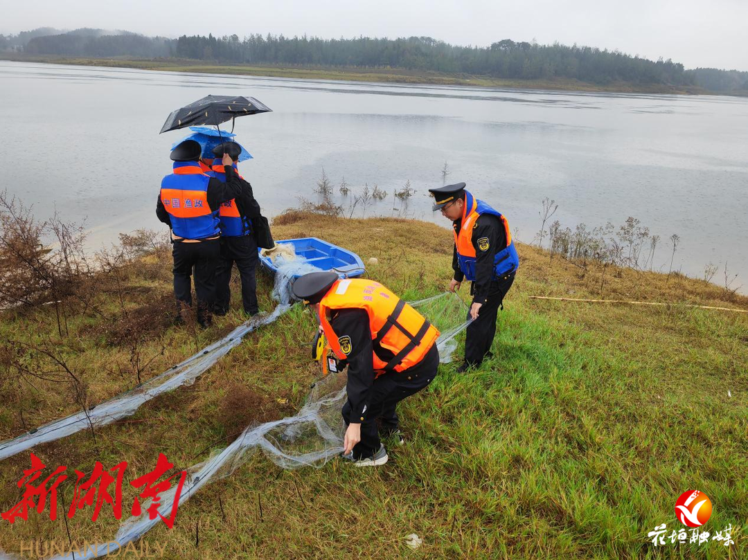 “你好,有两名渔民正在紫霞湖上进行非法捕捞。”接群众举报后,县农业农村局行政执法大队迅速行动,联系正在紫霞湖航道巡查的渔业渔政股、花垣镇政府执法部门一同赶至现场。