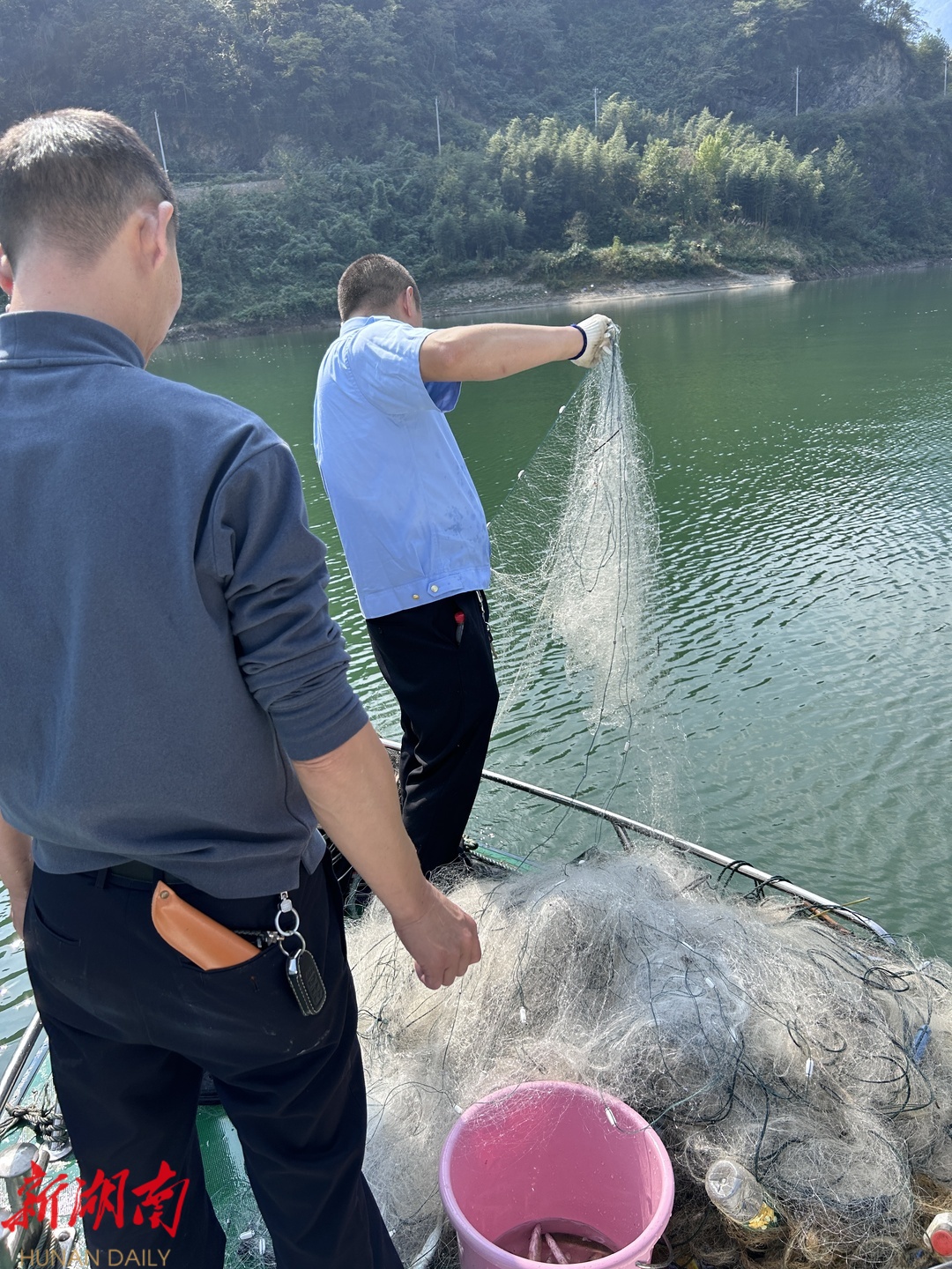 桑植、鹤峰两县联合执法开展河道“清网行动”