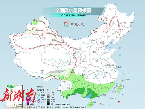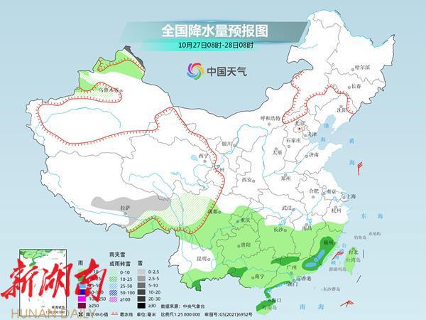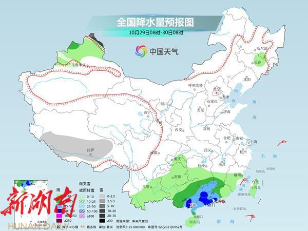 周日,江南降雨基本结束,最强降雨会出现在广东、广西,局地有大暴雨。新疆北部、西藏中部等地的部分地区有小到中雪或雨夹雪,其中,新疆北疆北部的部分地区有大到暴雪;江南南部、华南大部等地的部分地区有中到大雨,其中,广西东南部、广东中西部等地的部分地区有暴雨,局地大暴雨。