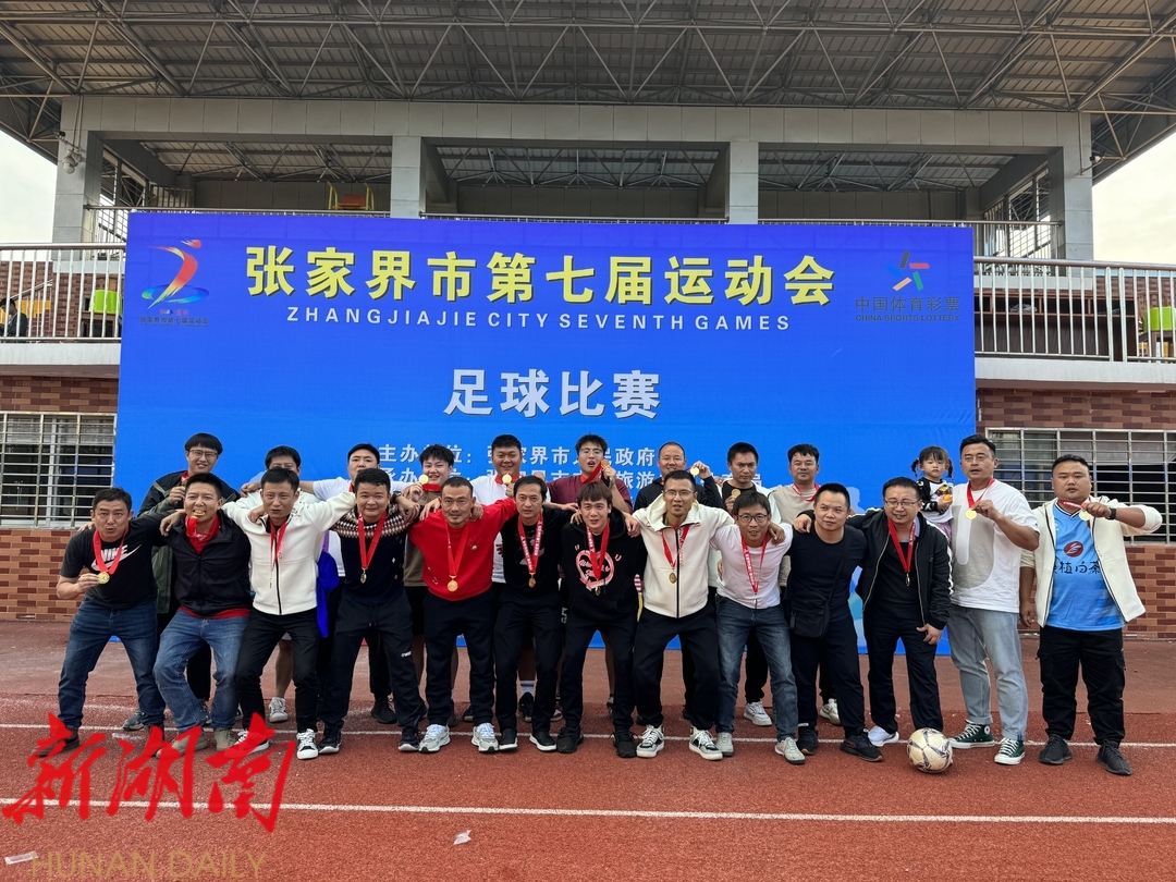 湖南日报·新湖南客户端10月29日讯 (记者 肖君 钟彬豪)10月29日,随着一声哨响,桑植成年男子足球队对战永定区队比赛落幕,桑植队以2:1战胜永定区队,拿下张家界市第七届运动会成年男子组足球冠军。