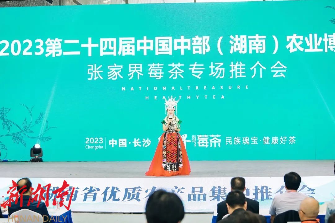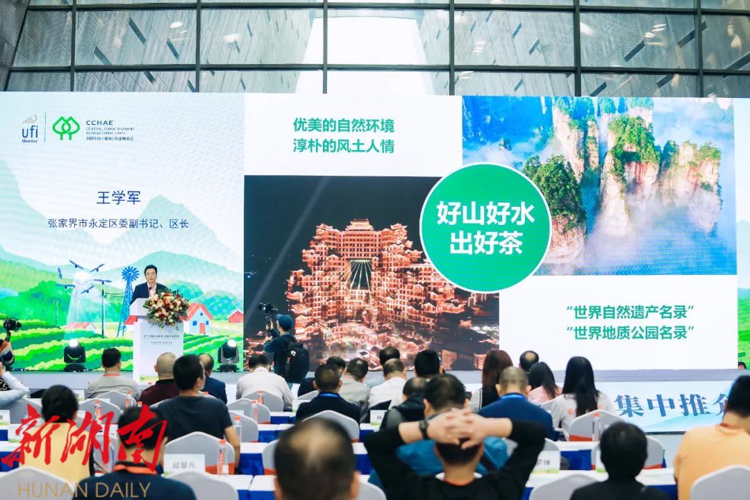 湖南日报·新湖南客户端10月29日讯(通讯员 田晓默)10月27日,张家界莓茶品牌专场推介活动在第二十四届中国中部(湖南)农业博览会湖南省优质农产品集中推介会上举行。市人民政府副秘书长朱敷建,永定区委副书记、区人民政府区长王学军参加推介活动。