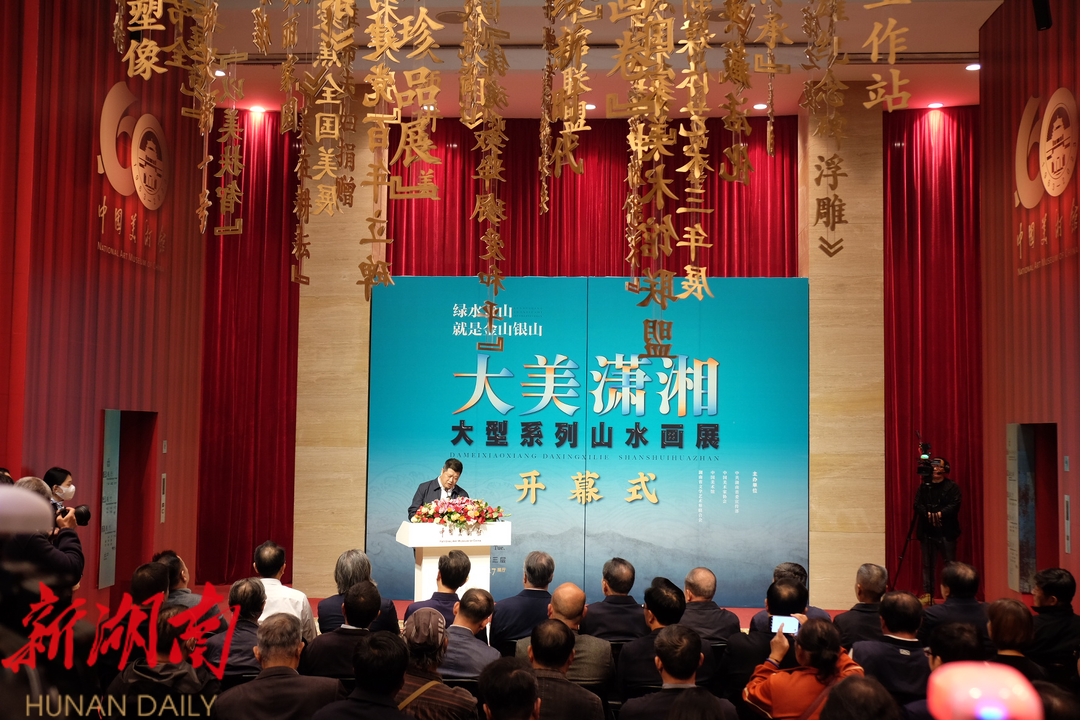 湖南日报·新湖南客户端10月30日讯(通讯员 胥扬)一图揽千年,潇湘三万里。 10月28日,由中共湖南省委宣传部、中国美术家协会、中国美术馆、湖南省文学艺术界联合会主办的"绿水青山就是金山银山"大美潇湘大型系列山水画展在北京中国美术馆开幕。展览着重推出了《湘江北去》《大江交响》《天下洞庭》等7幅山水画长卷、6件特邀作品、29件入展作品。汨罗书画家、书画院院长雷宪和将家乡美景融入画境,以作品《乡风楚韵》亮相展览,为潇湘之美增光加彩。这也是雷宪和作品今年第三次入国展。