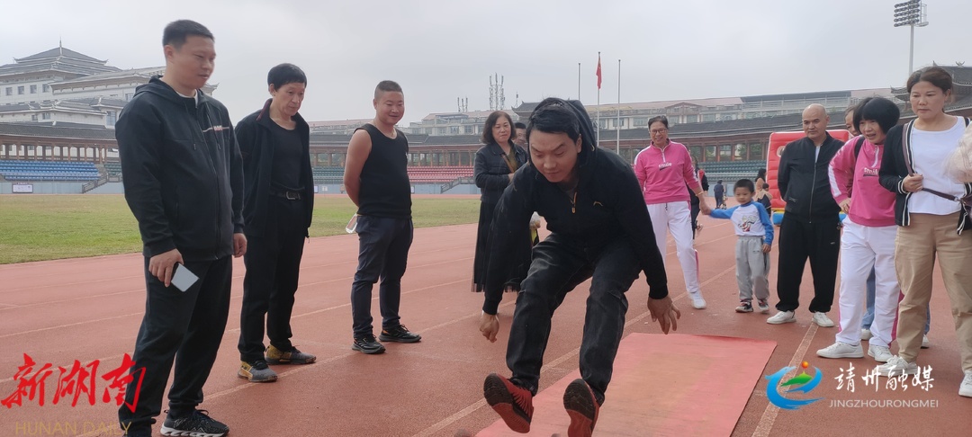 在靖州县民族体育场比赛点,参赛选手们热情高涨、各展其能,现场加油声此起彼伏。