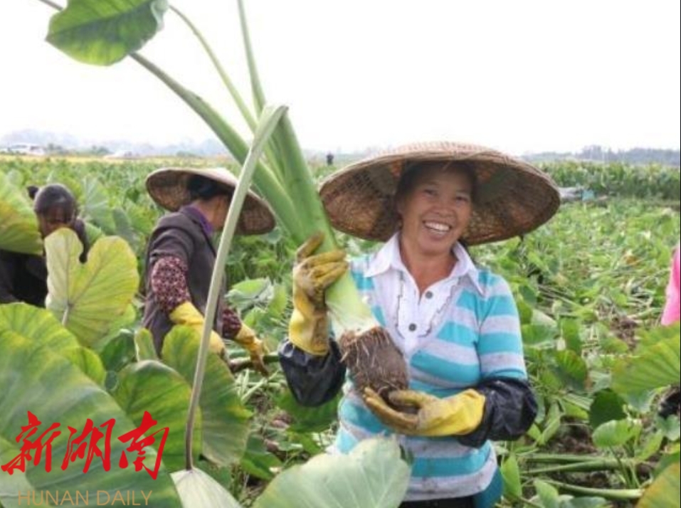 在 一望无际的香芋田,芋农们正忙着采挖和清理香芋。不一会儿的功夫,个大、体圆的香芋便堆满田间,分拣装袋后芋农们喜笑颜开挑着一担担芋头开始装车。在芋农们精细管护下,今年香芋长势喜人,个头普遍在 2 斤以上,最大的可达5斤。经过精心挑选、分级打包,新鲜的香芋将直接被运往长沙、广东等地。芋农们忙碌的同时,也能获得可喜的收入。