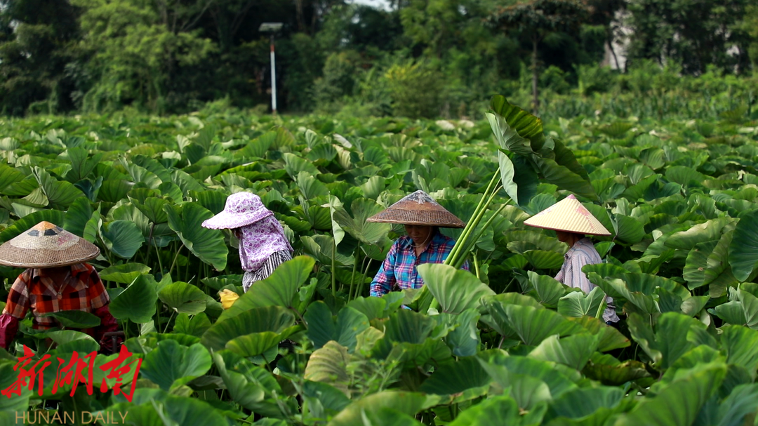 香芋,又叫槟榔芋,已有1000多年,是江永县蔬菜品种中栽培历史最久、面积最广、产值最高、最负盛名的优质农产品。一大早,千家峒瑶族乡山口村的香芋种植户何光旺就组织20多名本地群众带着锄头、铁锹等工具赶到绿意葱茏的芋田里采挖香芋,并把一车车香气四溢的香芋采挖运往加工厂销售。