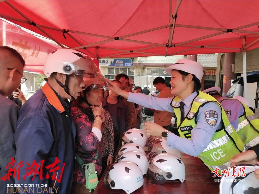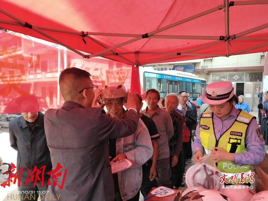 10 月 31日,市整治办与市交警大队在小水镇嘹亮村谭家山圩开展“一盔一带”安全守护送头盔行动,现场发放了 150顶头盔,150把“戴帽工程”宣传标语扇,并与村民面对面讲解佩戴头盔的重要性和正确佩戴方法,受到广大村民的交口称赞。