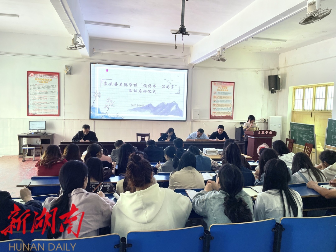 新湖南客户端10月31日讯(通讯员 蒋萍)近日,东安县启德学校举办“读好书 写好字”启动仪式,全体教师参加。
