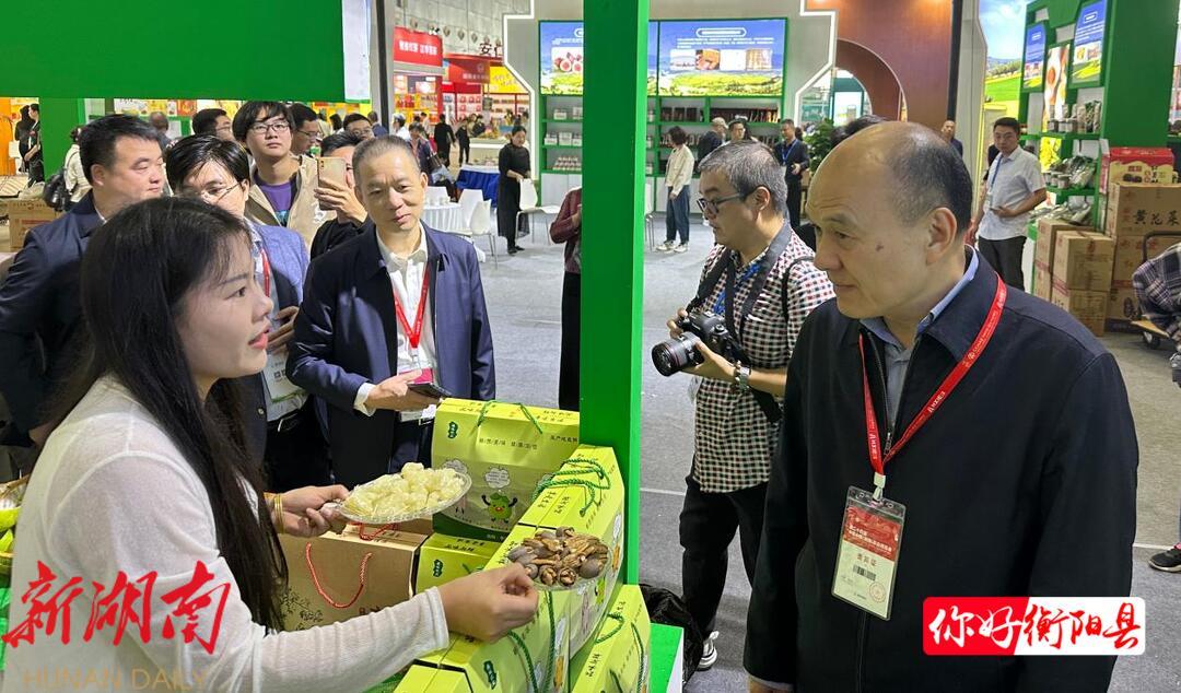 在此次中部农博会上,衡阳县上百种产品备受青睐,前来品尝、洽谈的人络绎不绝。衡阳台源乌莲、井头薯粉、金兰糯米笋、角山鲜活米、金芙羊肚菌、库宗菜籽油等农产品和特色美食火爆出圈。