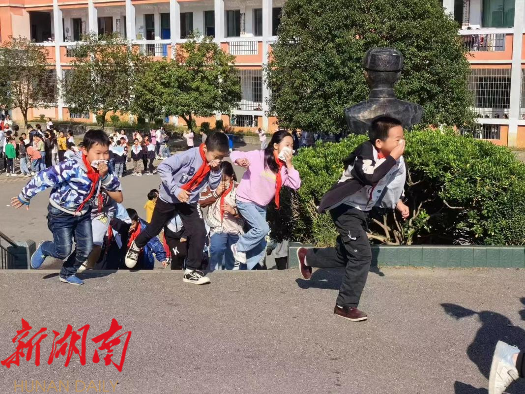 新湖南客户端11月1日(通讯员 傅灿 曾娟 胡纯霞)今年的11月1日是湖南省第23个防空警报试鸣日。当天上午,东安县启德学校以此为契机,组织全体师生进行防空防灾应急疏散演练。