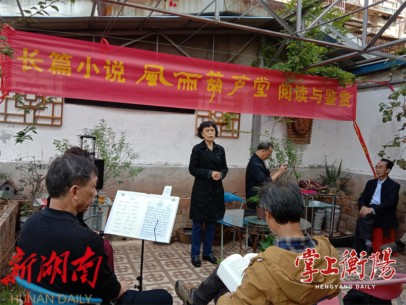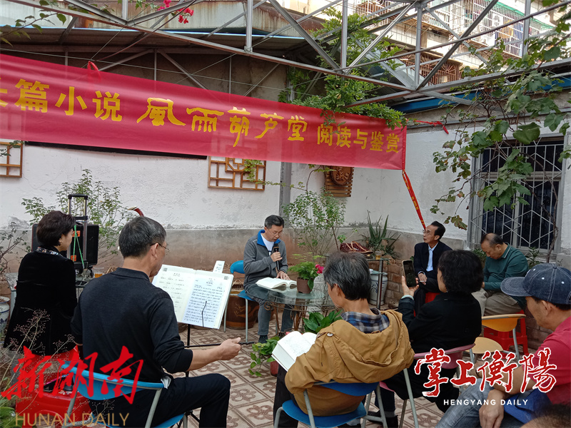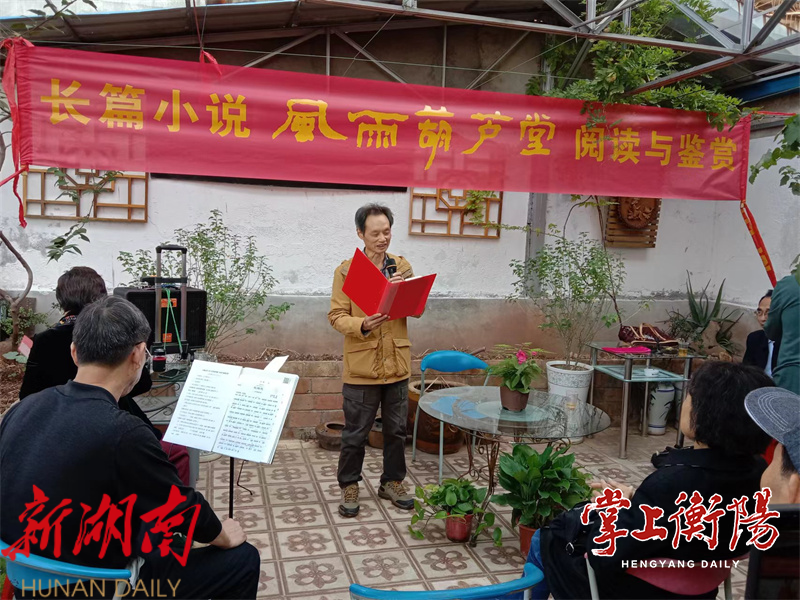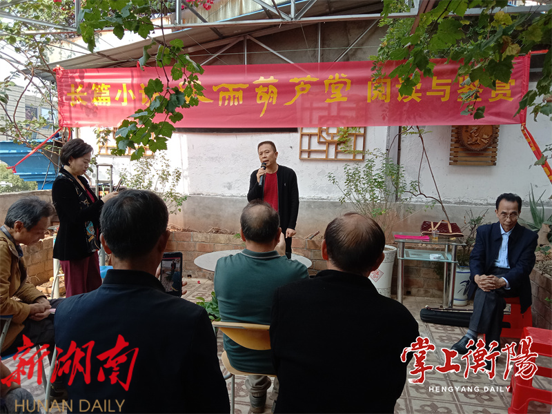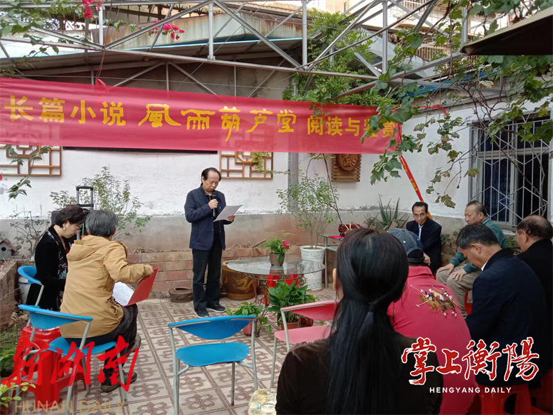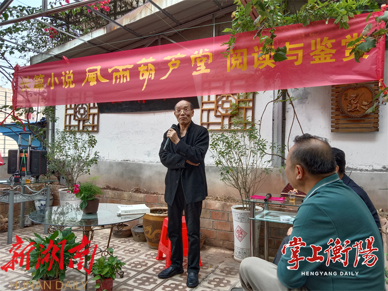 掌上衡阳11月1日讯(全媒体记者麻安田) 10月31日上午,地处衡阳市高新区三泰小区的大雁文学艺术馆露天花园座无虚席,一场围绕肖玉贵创作的长篇纪实小说《风雨葫芦堂》而展开的阅读与鉴赏活动正在热烈而有序地进行。