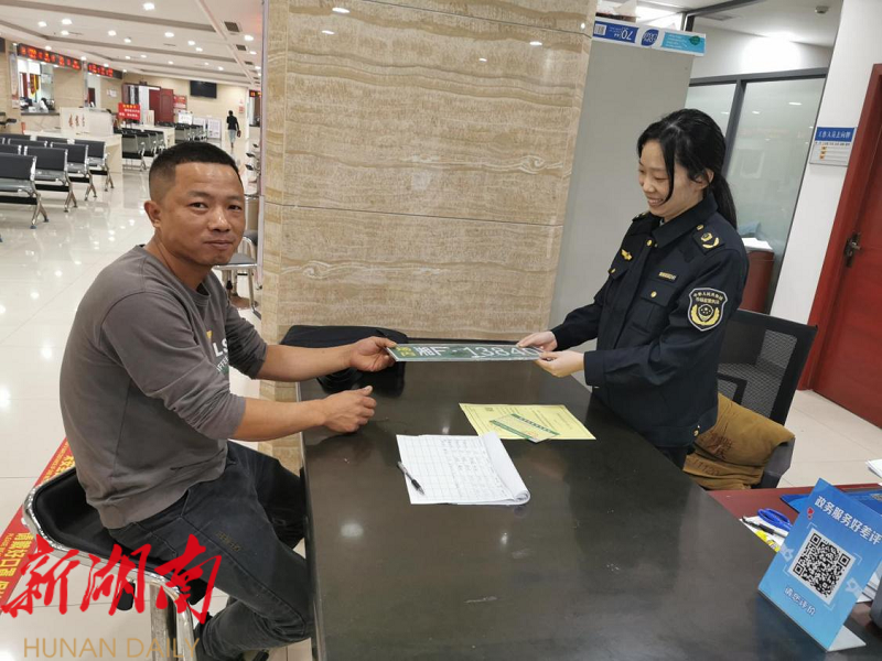 湖南日报·新湖南客户端11月2日讯(通讯员 左薇)近日,湖南丽音新材料有限公司的员工张义农来到湘阴县政务中心市监局窗口领取叉车的牌照、使用登记证及使用标志。他告诉笔者,“现在办理特种设备登记真是太方便了!”