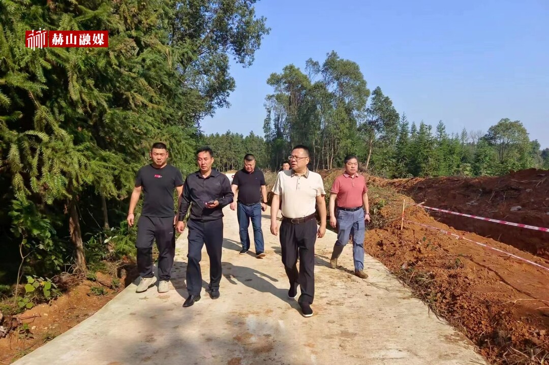 在东团村西塘组公路项目建设现场,符大欣深入项目工地察看工程进展和周边配套设施建设情况,详细了解公路硬化油化、道路绿化亮化、农田灌渠修复等工程进度,现场协调解决项目建设中遇到的困难。