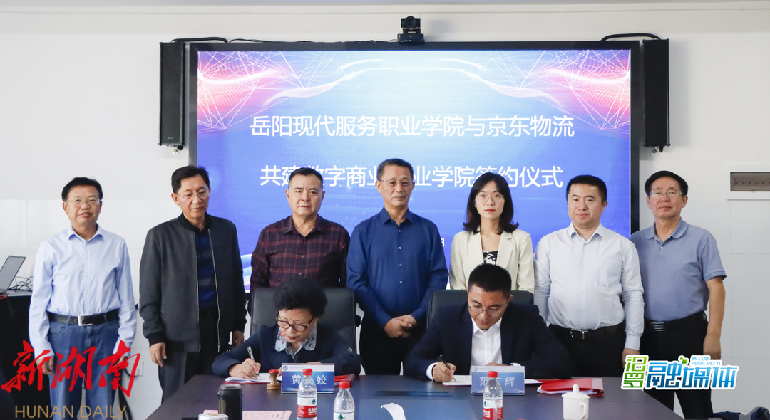 湖南日报·新湖南客户端11月6日讯(通讯员 周敏)11月2日,京东物流湖南地区首个“数字商业产业学院”落户位于弼时镇的岳阳现代服务职业学院,并正式签约。校企合作,将为职业院校专业建设、内涵提升、人才培养和特色凝练创造新价值,也为汨罗高新区“飞地园”产教融合、服务数字经济发展开辟新未来。京东物流科技副总裁范广辉,现代职院理事长黄凤姣、校长张建出席。