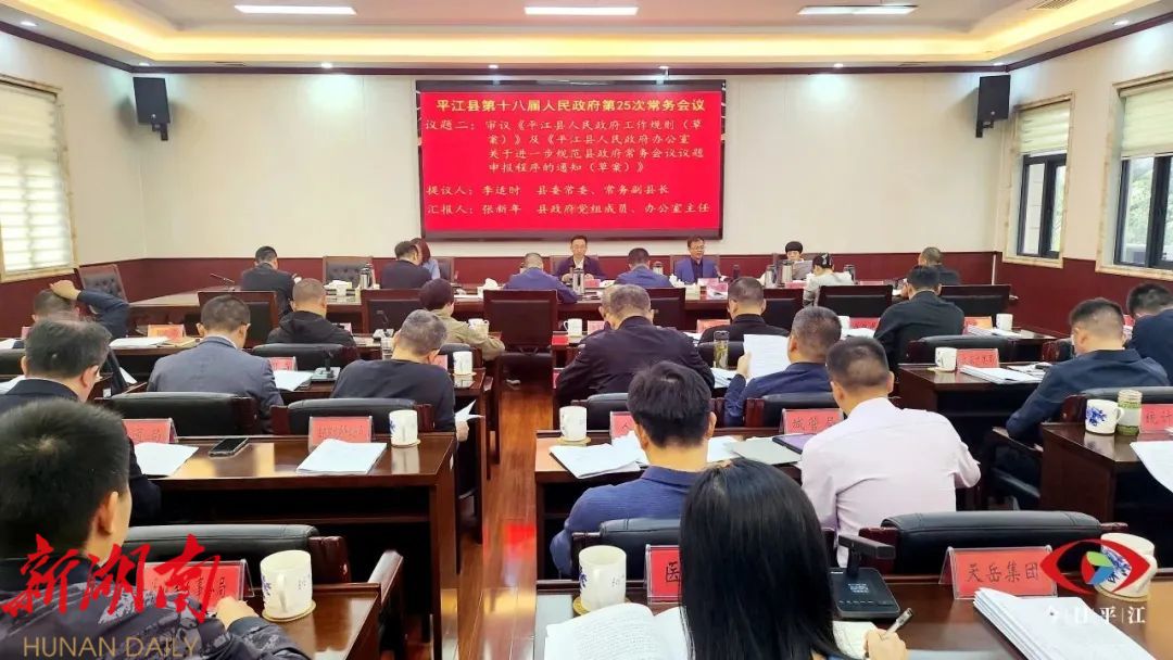 11月3日,县委副书记、县长彭方建主持召开平江县第十八届人民政府第25次常务会议,传达学习习近平总书记近期重要讲话精神,听取当前安全生产工作情况等汇报,研究部署系列重点工作,审议相关规范性文件。