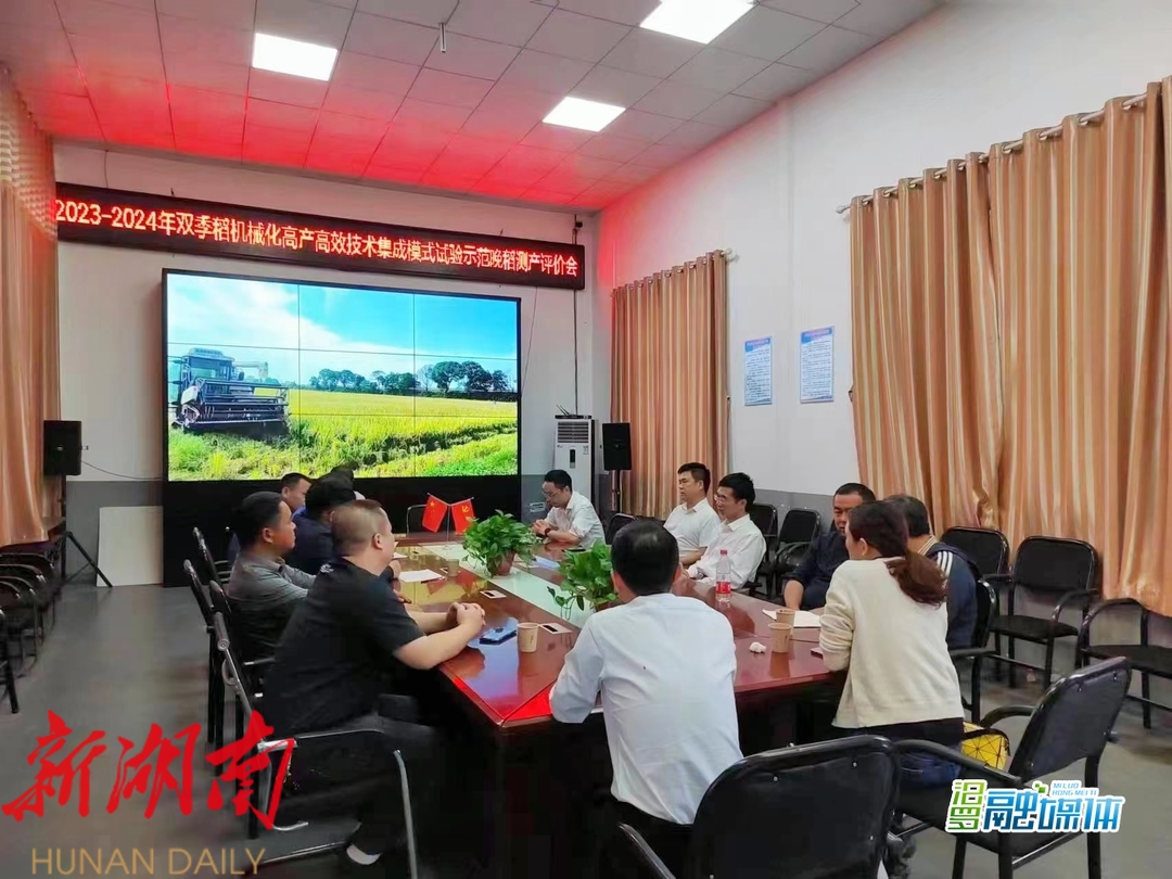 湖南日报·新湖南客户端11月6日讯(通讯员 夏凡 刘浩)近日,省农机事务中心、岳阳市农业农村事务中心专家来到 罗江镇石仑山村双季稻机械化生产高产高效技术集成模式试验示范区 ,进行晚稻测产评价。据现场测产验收报告,机械化生产高产高效技术集成模式比传统机械化生产,每亩增产12%,增产达41.6公斤。汨罗市农机事务中心、国家统计局汨罗调查队相关专家参加。