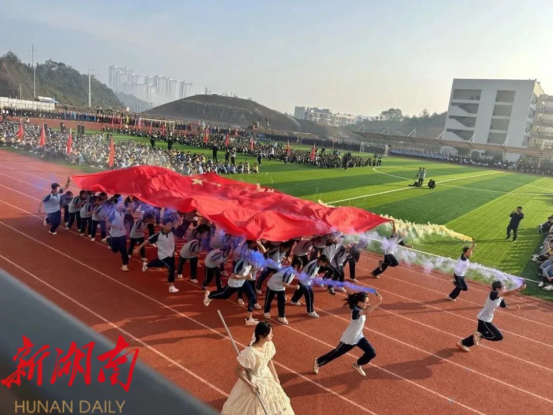 不过是校运会入场式的“基操” 真正的满分亮相 是少年少女们拉着红旗飞奔