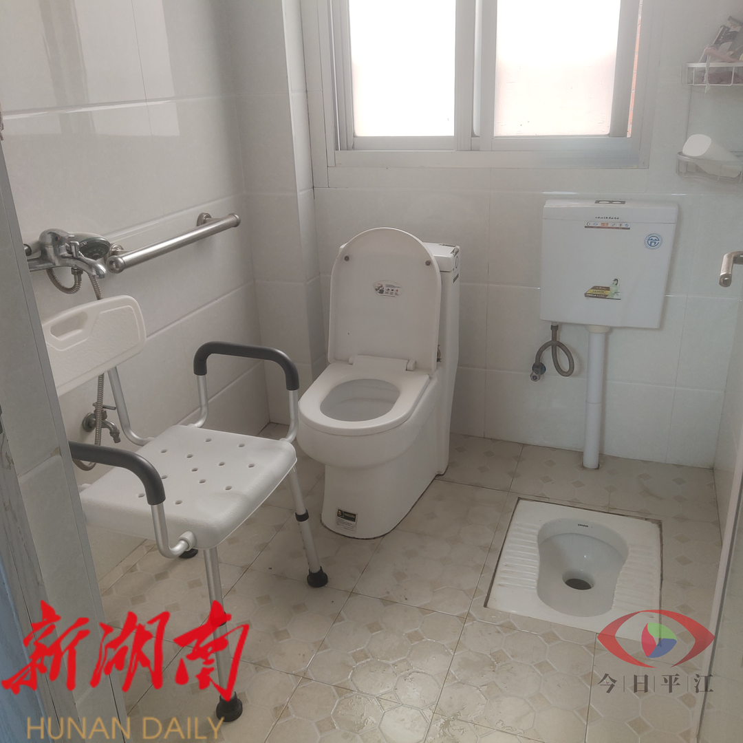 “谢谢你们给我准备轮椅和淋浴椅,我现在已经可以自己照顾自己了,太感谢啦......”平江县瓮江镇石坳村63岁的罗娭毑拉着工作人员连连道谢。罗娭毑前年因脑溢血中风,导致行动不便,需要人照顾饮食起居。适老化改造项目专门为她配备了轮椅,将蹲便器改为坐便器,加装淋浴椅,并在卧室、厨房、卫生间配备扶手,在厨房加设中部柜,方便物品取放,让她基本实现了生活自理。通过全覆盖调查,当前平江县享受适老化改造家庭的老人们对改造结果和使用效果满意度为100%。