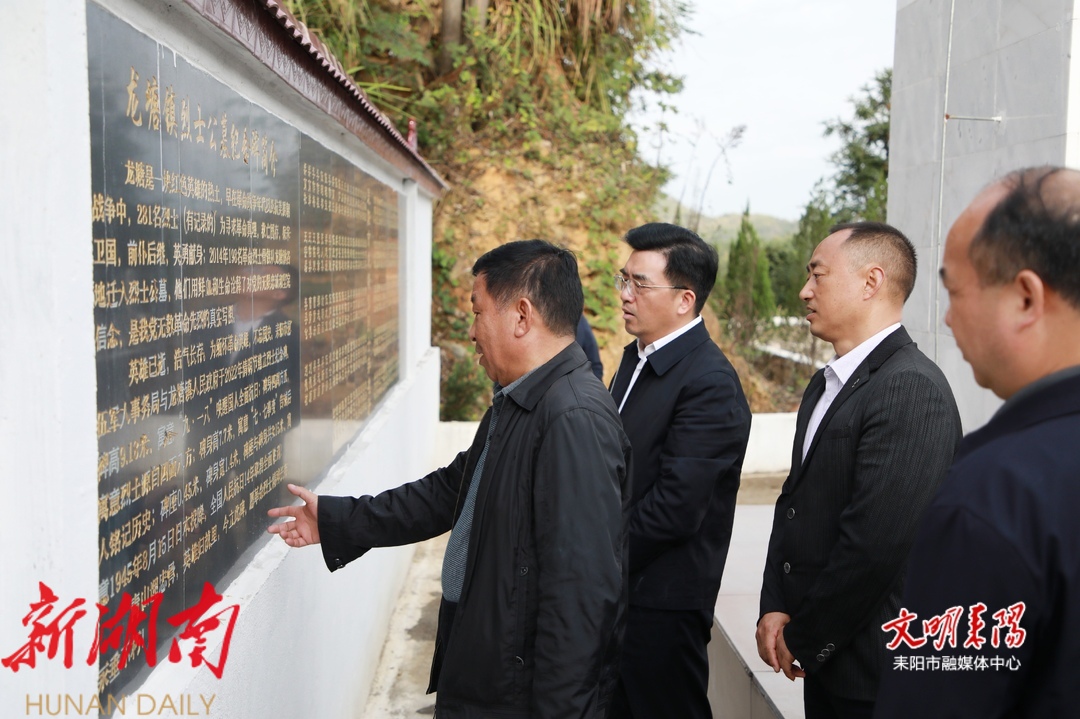 11月6日至7日,省退役军人事务厅一级巡视员易德才一行来耒阳调研烈士纪念设施项目建设、保护、管理工作,衡阳市委副书记、耒阳市委书记赖馨正一同调研。
