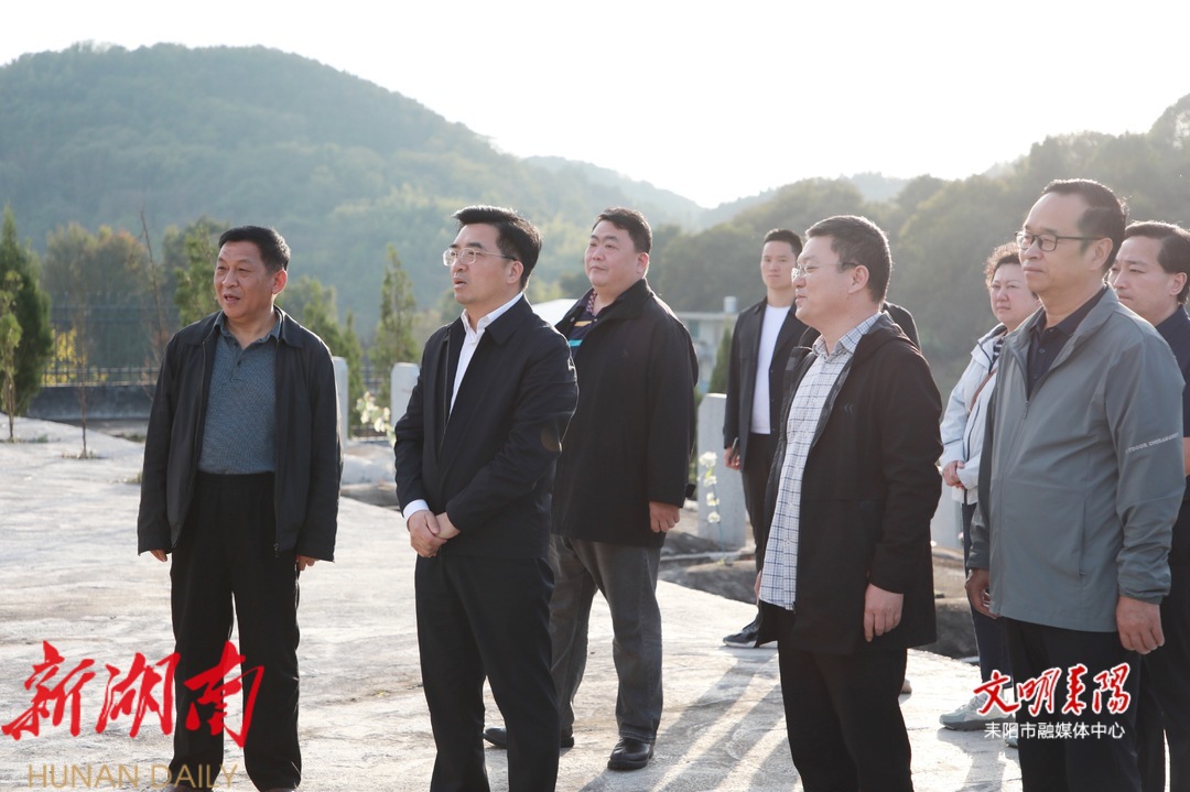 6日下午,易德才一行来到耒阳市革命烈士纪念馆建设现场,详细了解场馆规划规模、功能布局等情况,就场馆建设、日常管护、史料搜集整理等方面提出了具体指导意见,并瞻仰烈士纪念碑、英烈墙和湘南起义红色文化长廊,深切缅怀为民族独立、人民解放、国家富强和人民幸福英勇牺牲的革命先烈。随后,易德才一行到龙塘镇烈士陵园和东湖圩镇烈士墓园,实地察看烈士纪念设施管理保护和周边环境等情况,对耒阳市烈士褒扬纪念工作取得的成效和在乡镇建设烈士陵园的做法给予了充分肯定。他强调,烈士纪念设施是党和国家的红色基因库,是传承弘扬英烈精神和爱国主义精神的红色教育阵地,要严格按照《烈士褒扬条例》和《关于加强新时代烈士褒扬工作的意见》要求,加快推进革命烈士纪念馆建设,扎实做好烈士纪念设施管护工作,进一步优化功能布局,完善基础设施,更好发挥烈士纪念设施褒扬英烈、教育后人的红色资源作用,在全社会营造“崇尚英烈、缅怀英烈、学习英烈、捍卫英烈、关爱烈属”的浓厚氛围。