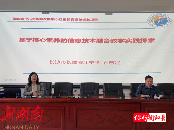 三是 专题讲座,提升教师信息化素养。送教活动后,长郡滨江中学校长石东妮对全体教师进行了“‘ 三新’背景下,智慧教育赋能教师专业成长与教育质量提升”的主题讲座。石东妮介绍了长郡滨江中学近年来在信息技术方面开展的一系列活动,分享了在教学措施等具体落地过程中所收获的经验与取得的成效,为芙蓉学校在信息技术与教学融合上提供了很好的可复制经验。