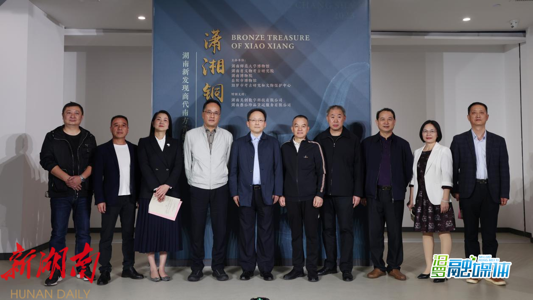 湖南日报·新湖南客户端11月9日讯(通讯员 周芯)11月7日,由湖南师范大学博物馆联合湖南省文物考古研究院、湖南博物院、岳阳市博物馆、汨罗市考古研究和文物保护中心四家单位共同主办的“潇湘铜华——湖南新发现商代南方青铜器展”在湖南师大博物馆开幕。汨罗出土的商兽面纹扁体筒形觥、商兽面纹青铜贯耳壶、商兽面纹青铜铙、商兽面纹立鸟器盖和商猪形青铜磬(现藏于湖南省博物院)五件青铜器亮相本次展览。