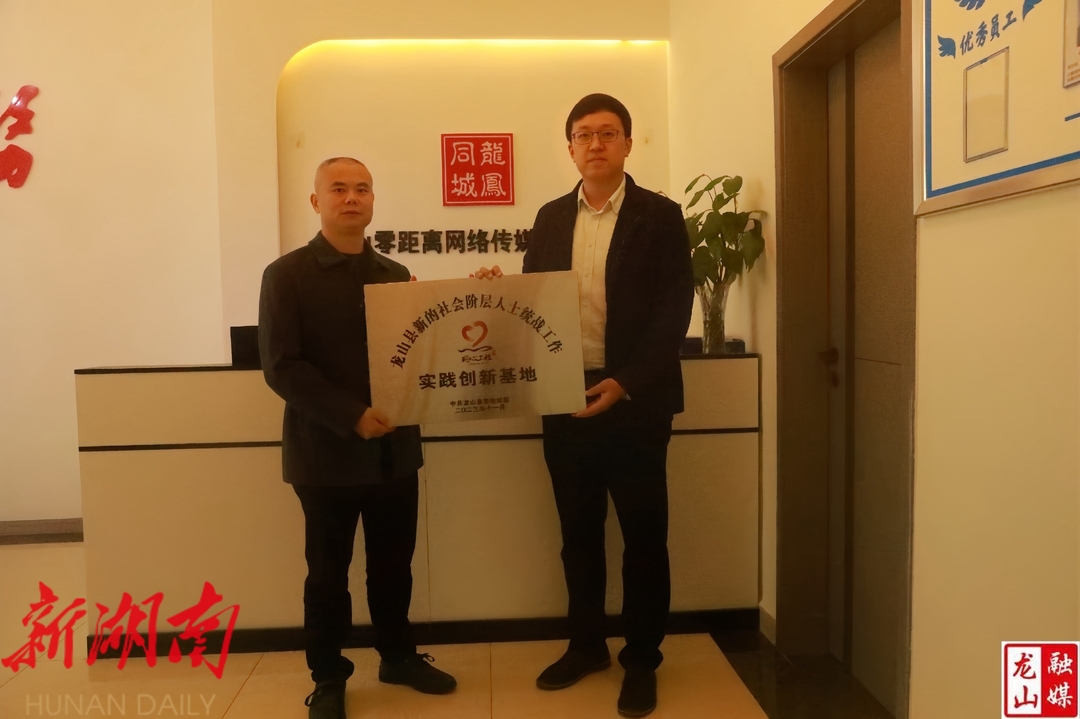 龙山县融媒体中心11月9日讯(通讯员 李泳橦 龚秀萍) 11月7日,龙山县新的社会阶层人士统战工作实践创新基地授牌仪式在龙山零距离网络传媒有限公司举行。县委常委、县委统战部部长向怿文出席仪式并授牌,县委统战部、县新的社会阶层人士联谊服务中心相关负责人参加仪式。