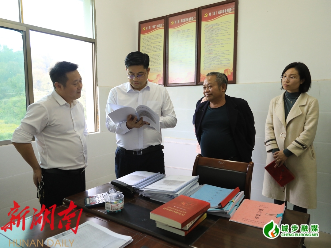 图为县委书记余勋伟在金龙村查阅乡村振兴资料
