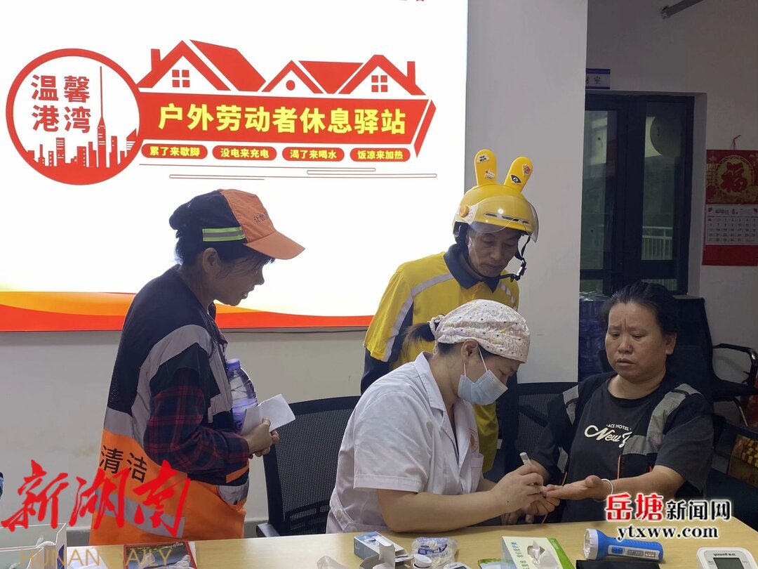 “夏季高温时期,我们每天会在服务站点熬上一锅绿豆汤、一壶凉茶,供过往户外劳动者免费饮用。”岳塘区五里堆社区站志愿者米丽辉说。目前,在五里堆社区站有4名志愿者轮流开展志愿服务。