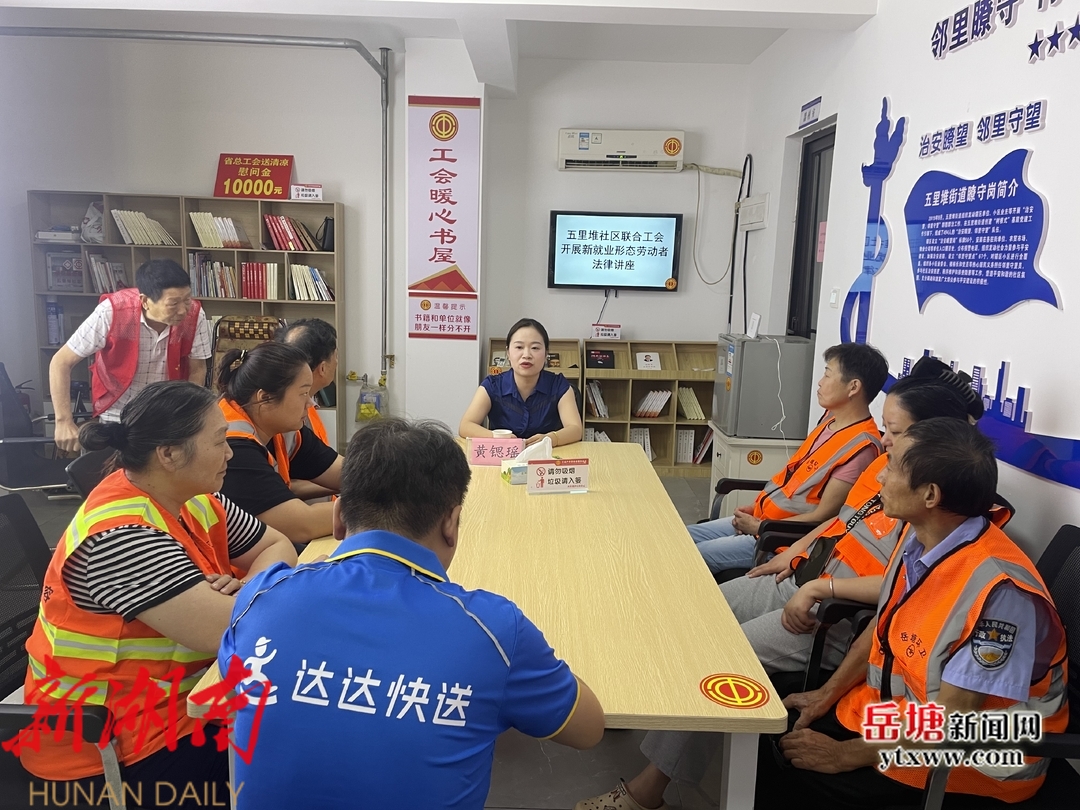 除了为户外劳动者提供免费的休息场所,社区还依托站点的空间和基础设施,进行了新的尝试和探索,积极开展“微党课”,广泛宣讲党的理论、方针、政策;针对新就业群体劳动强度大、工作时间不规律、工作场所不固定等共性问题,举办新就业形态劳动者法律讲座,开展法律服务保障工作,充分提高新就业形态劳动者的维权意识;邀请医护人员开展专项体检义诊,为户外劳动者送上 健康关怀 。 同时,常态化组织开展政策宣传、困难帮扶、权益维护、就业指导等10余项拓展服务,满足新就业群体的个性化需求。 “坚持按照党建引领的思路,将心理疏导、法律咨询等多项特色服务,融入户外劳动者服务站点,将其打造成为基层治理的综合服务站点。”五里堆社区党支部书记冯英表示。