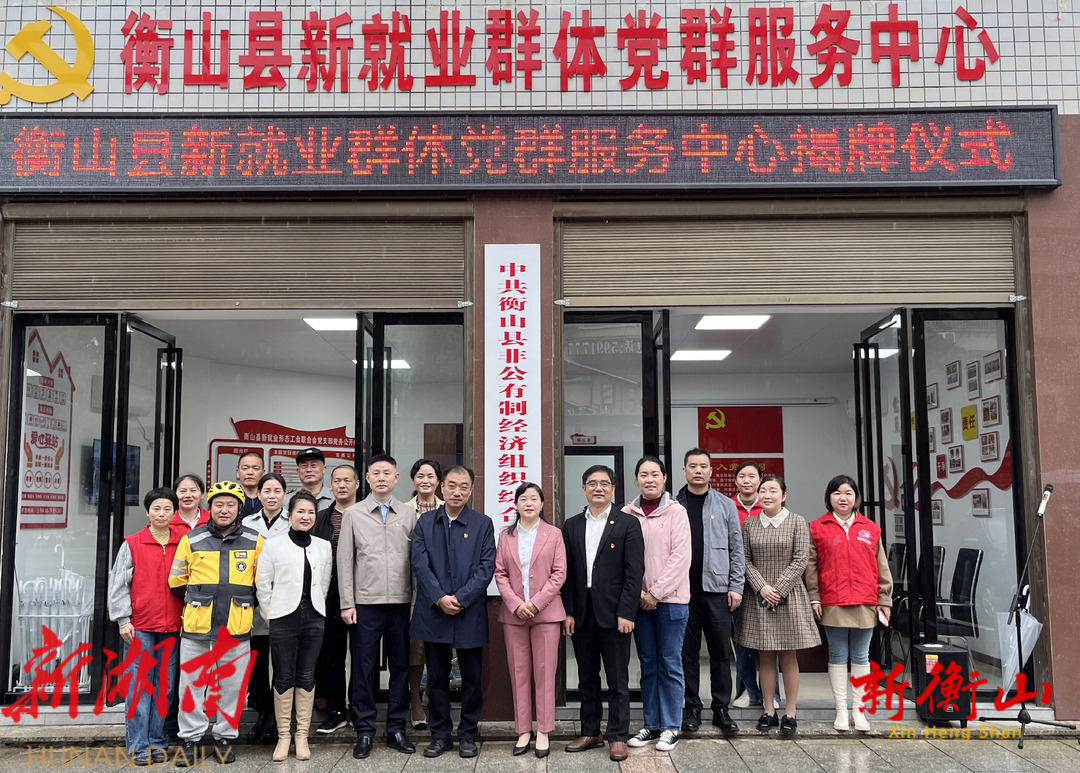 衡山县融媒体中心11月9日讯【记者:赵诗 刘紫叶 】为抓实新业态新就业群体党建,在基层汇聚起更多元的力量,推动新就业群体更好地融入基层治理党建格局,11月9日,衡山县新就业群体党群服务中心落成揭牌并正式启用,专为新就业人群打造一站式党群服务。县委常委、组织部长、统战部长夏冰出席揭牌仪式。