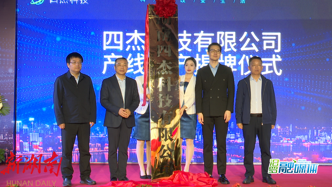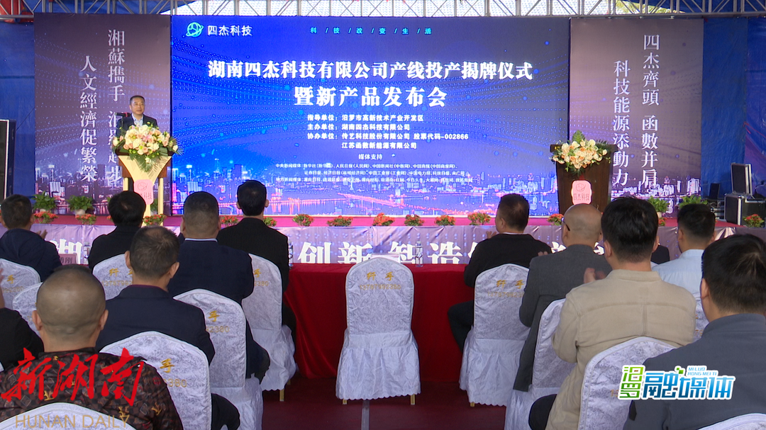 在当天举行的项目竣工投产揭牌仪式暨新产品发布会上,市委书记朱平波,汨罗高新区党工委书记何厚德,党工委副书记、管委会主任冯勇刚,四杰科技董事长费喜明共同为四杰科技产线投产和新产品发布揭牌。