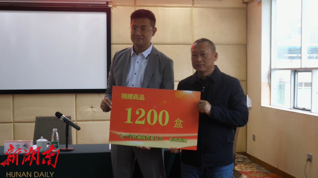 在捐赠仪式上,哈药集团有限公司专业渠道全国总经理王文杰代表哈药集团向古丈县医疗健康部门捐赠1200盒药品。
