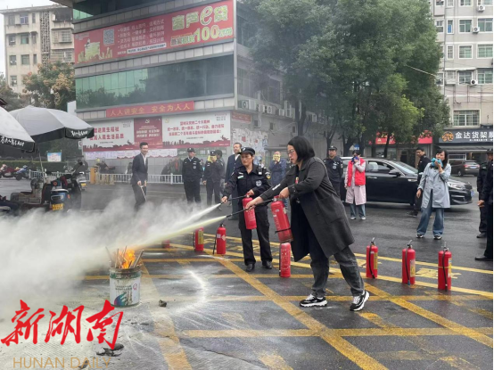 “使用灭火器扑灭初期火灾时,要先拔开保险销,压下压把,快速跑至着火源上风方向约1.5米处,对着火源根部进行喷射。”随后,消防宣传员组织大家进行了一场灭火实践演练,向大家详细讲解了灭火器正确的使用方法。演练中,大家自告奋勇,纷纷过了一把“灭火瘾”。