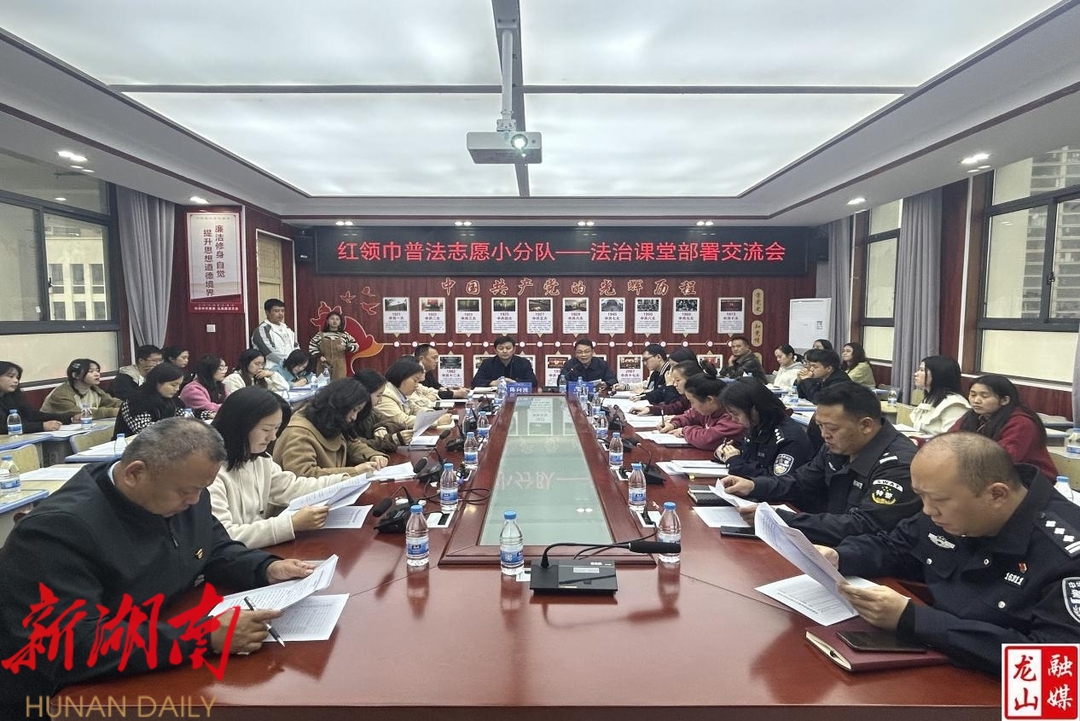 龙山县融媒体中心11月13日讯(通讯员 汪娟娟 胡斌 马昌宇)11月10日,龙山县“红领巾”普法志愿者小分队法治课堂部署交流会在华塘芙蓉学校召开,县司法、公安、法院等各单位共40余人参会。