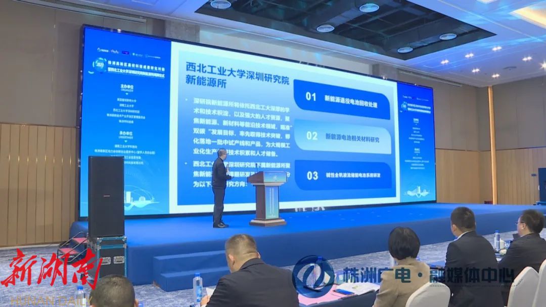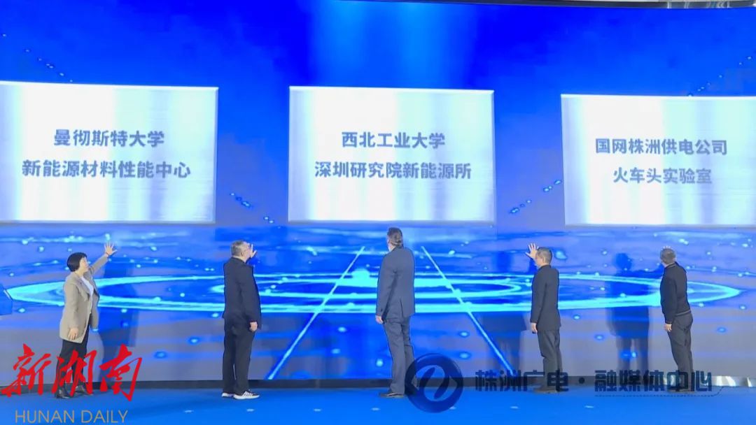 活动上,新能源所和中南大学资源加工与生物工程学院、国网湖南省电力有限公司合作签约。随后,西北工业大学深圳研究院新能源所、曼彻斯特大学新能源材料性能中心、国网株洲供电有限公司火车头实验室进行揭牌。