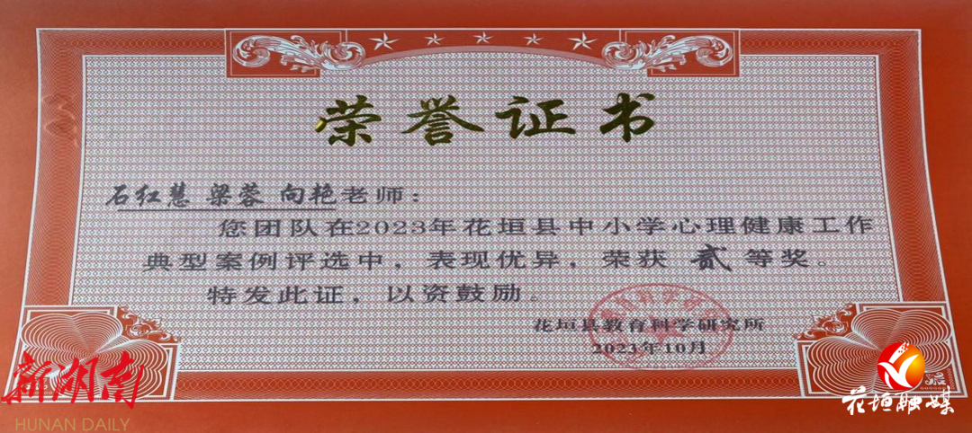 近日,花垣县边城初级中学教师石红慧、梁蓉、向艳创作的作品《一粒种子的旅行——初中生生涯规划》在花垣县中小学生心理健康工作典型案例比赛中荣获二等奖。