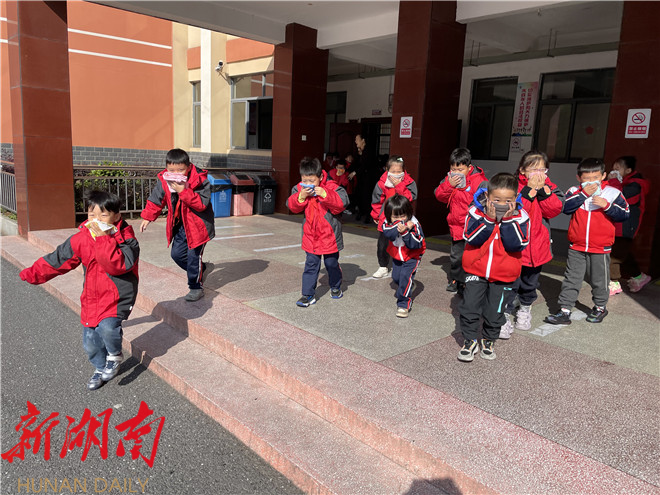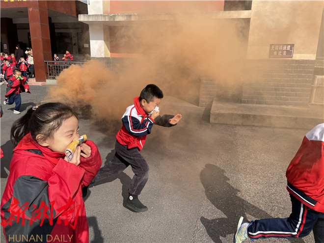 “演练开始!”学校校长郭超话音刚落,益阳市人民路小学,只见前后两栋教学楼楼梯口附近烟雾弥漫,火化四渐,楼道两边,楼梯口旁边,都站着老师,随时疏导慌忙往外跑的学生。