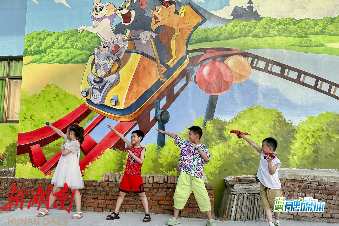 孩子们在漫画墙玩耍 (胡猛 摄)