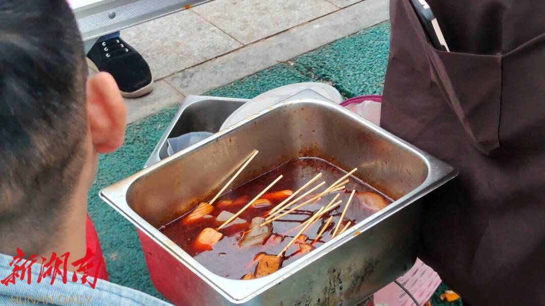 “村歌赛的人流量要比街上的人流量好很多,今天借着村歌赛我还是小小挣了一笔。”长沙臭豆腐摊前不少顾客正在等待老板打包食物,老板王玉霞手脚麻利地将臭豆腐放入碗中,随后加入香菜、辣椒等小料,她告诉记者,在短视频平台上刷到村歌赛宣传内容,便赶到这里做起了小摊生意,生意还不错。