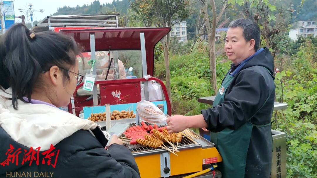 湖南日报·新湖南客户端11月16日讯(记者 肖君 郭军)“看完精彩的比赛了,饿了也不需要跑很远就能吃到好吃的,精彩表演配美味小吃,绝了!”11月14日,桑植县马桑树主题公园人来人往,首届村歌赛比赛迎来不少观众的同时,许多商贩也闻声而来,小吃的香味伴随着悦耳的歌曲,现场氛围逐渐被点燃。