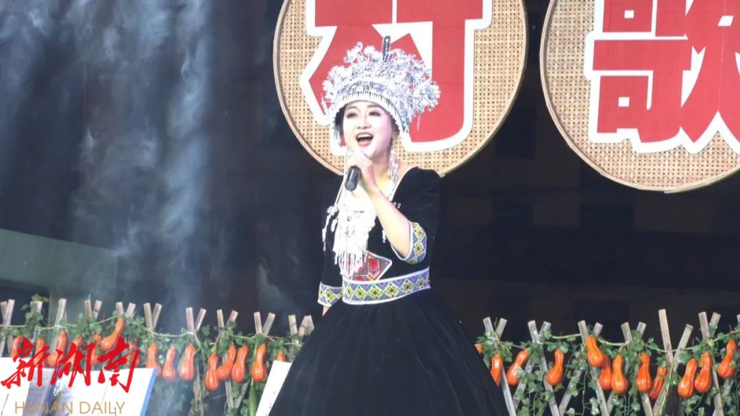 湖南日报·新湖南客户端11月16日讯(记者 尚柳)“一个勒个嘀咯的树勒,打一个嘀咯儿的床勒,一条嘀咯的船船儿哟,配一把嘀咯儿的浆勒……”11月14日晚,桑植首届村歌赛半决赛在马桑树公园举行, 来自廖家村镇廖家村社区的田秀梅以《桑植民歌联唱》俘获了评委的心,以9.794分拿下歌曲类第一名,顺利晋级总决赛。