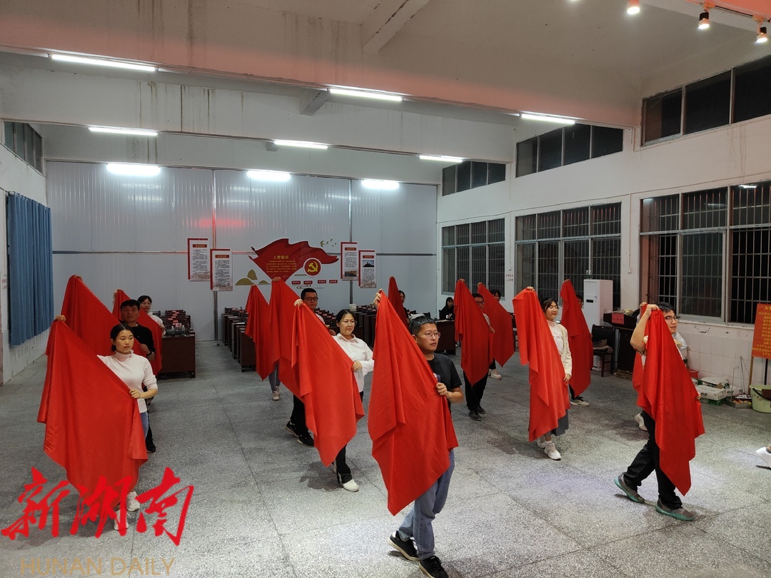 廖家村镇党委委员、副镇长吴卫华告诉记者,《永远跟党走》节目的16名表演人员全部为镇政府干部,在党委政府号召之下,党员干部踊跃参与、认真备赛。镇党委书记唐妙玲在繁忙的工作之余,亲自抽时间给大家排练、指导动作。有了书记的带动,大家的凝聚力、向心力更强了。