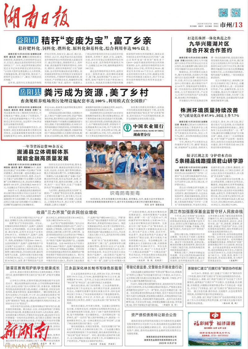依托粪污资源化利用模式,岳阳县不仅化肥农药使用量逐年下降,还实现畜禽养殖环境由“脏乱差”向“洁净美”转变,农村居民生产生活环境持续改善,获评全国畜牧业绿色发展示范县。