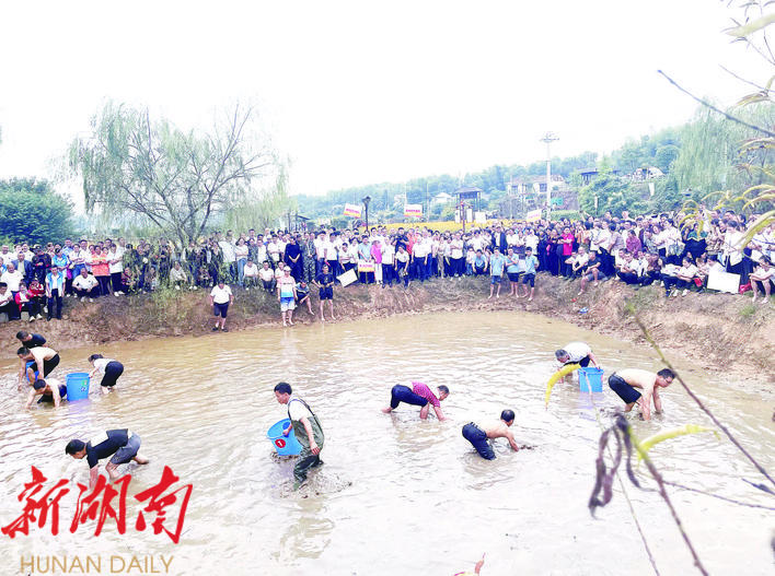 近日,天元区“幸福·三门里”农民运动会在石三门现代农业公园举行,来自机关、各村(社区)的23支代表队共400余名农民运动员参加比赛。运动会设置了篮球、拔河、浑水摸鱼、夹气球、挑担运粮、赶鸭子等贴近农业、农村、农民的竞赛项目,还有幸福向前冲、甩掉烦恼、眼疾手快等充满趣味的游客体验项目,此外,烟花晚会、趣味“村晚”等活动也让观众大饱眼福。图为“浑水摸鱼”比赛现场。