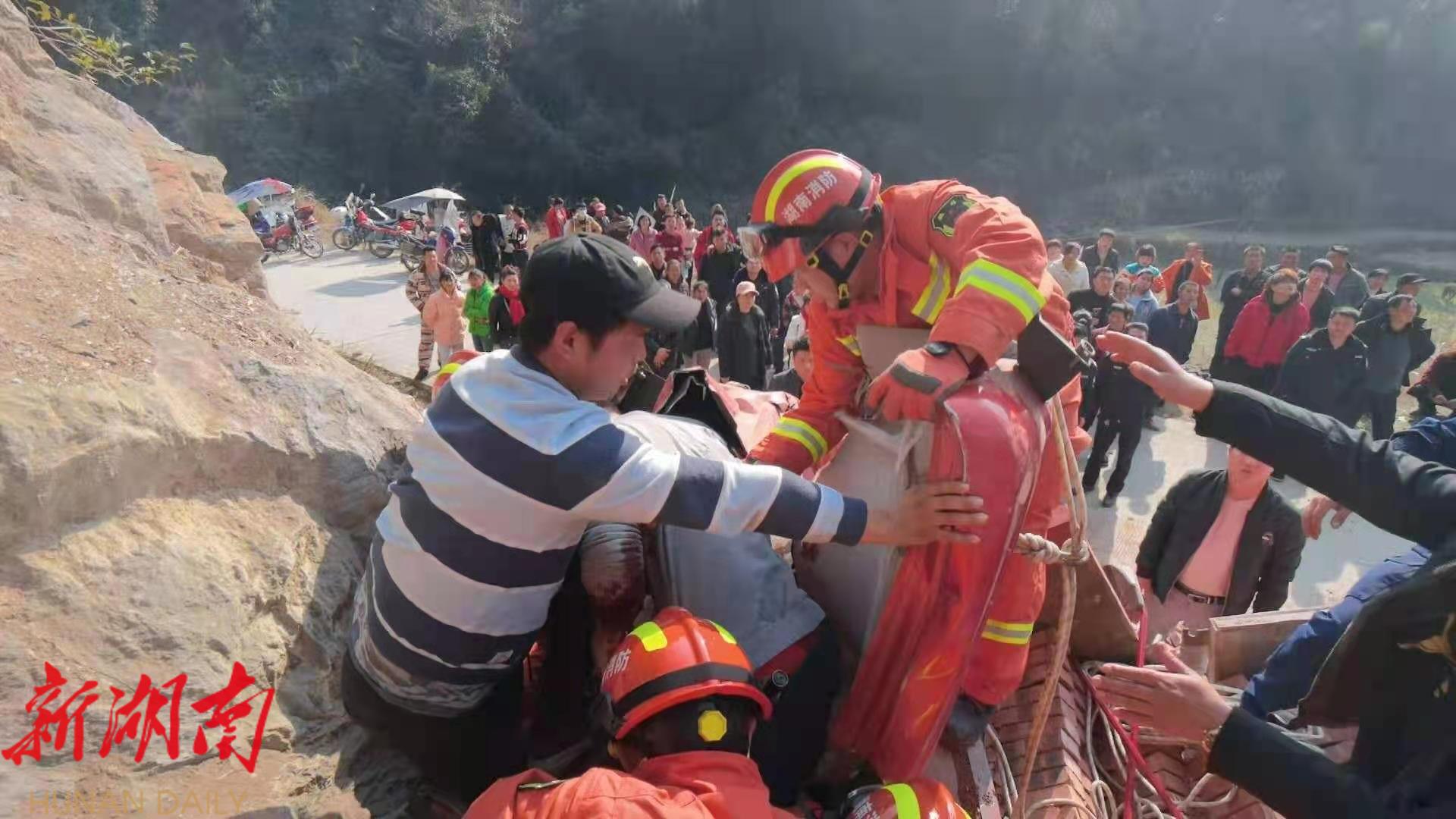 新新邵客户端1月18日讯 (记者刘丈国 通讯员 余骏)1月15日,湖南省新邵县消防救援大队闻警即动,与驻地群众携手将一名货车车祸遇险司机安全救出。