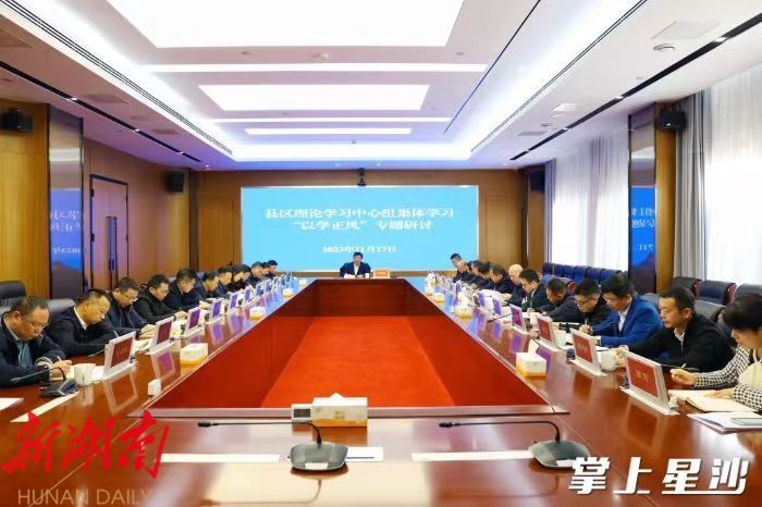 11月17日上午,县区理论学习中心组开展集体学习,围绕“以学正风”这一主题进行专题研讨。长沙经开区党工委书记、长沙县委书记付旭明主持并作总结讲话,强调要更加自觉地运用习近平新时代中国特色社会主义思想改造主观世界、提高党性修养、锤炼过硬作风,在县区大兴务实之风、弘扬清廉之风、养成俭朴之风,为率先打造“三个高地”、全面建设中国式现代化先行区提供坚强保障。省委第一巡回督导组有关同志到会指导,全体在家县区理论学习中心组成员出席。
