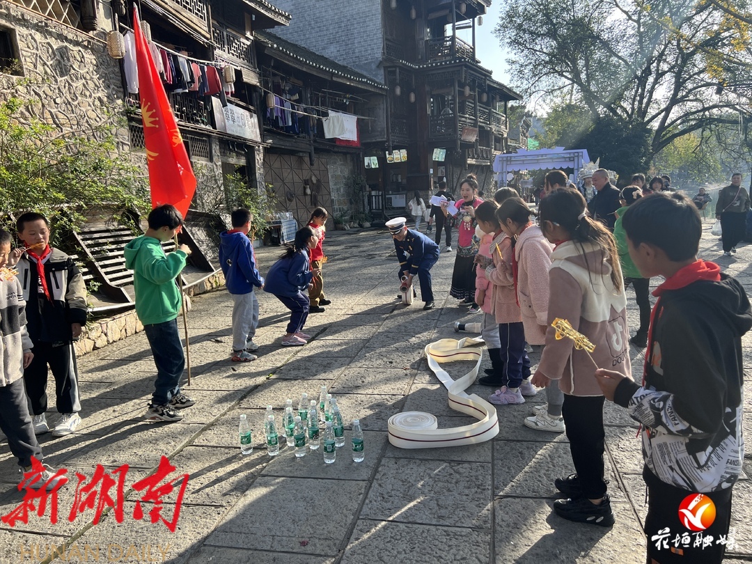 为深入开展“119”消防宣传月活动,切实提高景区居民、商户、游客消防安全意识,营造良好的景区安全环境,11月16日,花垣县消防救援大队在边城茶峒景区开展“听消防员述说他们守护着的边城故事”直播活动。