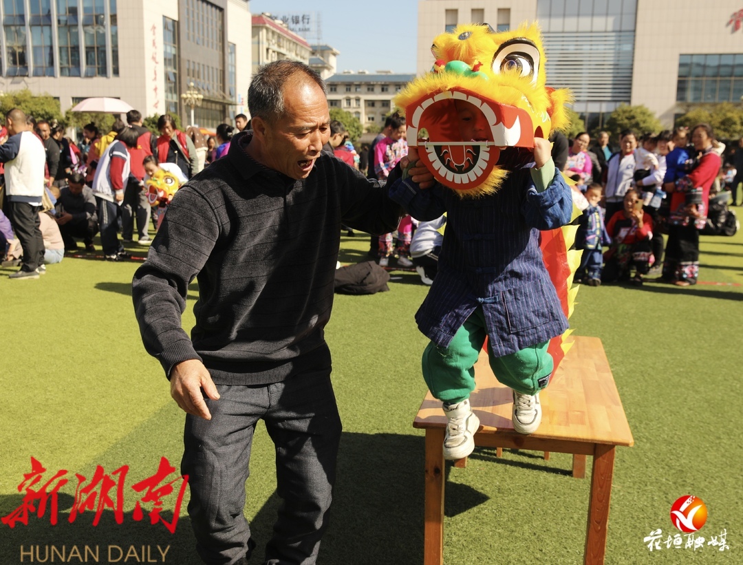 在亲子游戏环节,幼儿园设计家长及幼儿们喜闻乐见的运动游戏舞狮舞龙大比拼、竹竿舞、运送粮食、踩高跷、亲子律动、猫抓老鼠、抬花轿、集体团圆舞等,小朋友们个个奋勇争先,使出浑身解数,和家长默契配合,将比赛氛围推向高潮,现场助威声、喝彩声、笑声此起彼伏。