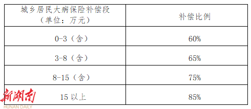 1. 基本医疗城乡居民参保人员住院发生的医保目录内医疗费用,扣除住院起付线后,省部属医疗机构报销60%,市内三级医疗机构报销65%,二级医疗机构报销80%,一级医疗机构或不设等级医疗机构报销82%,乡镇卫生院、街道卫生服务中心报销85%。全市城乡居民基本医保年度报销限额为15万元。