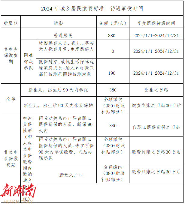 全省统一缴费标准为每人每年380元